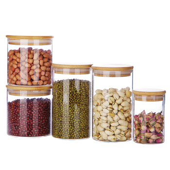 Bambu kapaklı toptan hava geçirmez cam kavanoz seti toplu mutfak kiler gıda saklama kapları